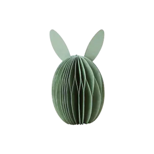 Dekorativ påskepynt i papir formet som et lite egg med kaninører. En fin detalj til påskebordet, i vinduskarmen eller sammen med annen vårpynt.