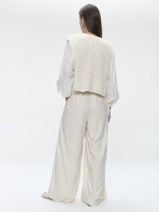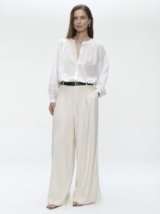 Den lette lin- og viskoseblandingen gjør den sval og behagelig, mens den løse passformen og vide ben gir et avslappet, men sofistikert uttrykk. Perfekt til lyse sommerantrekk – style den med skjorte, topp eller strikk for en gjennomført look.